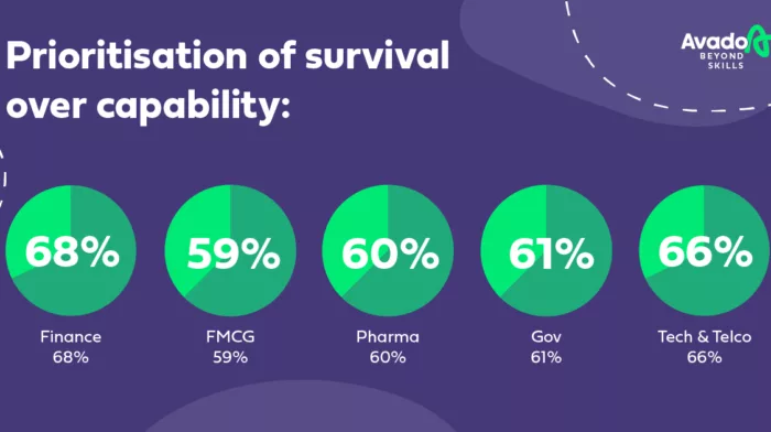 - Financial services respondents were the most likely to report a prioritisation of survival over capability at 68%.