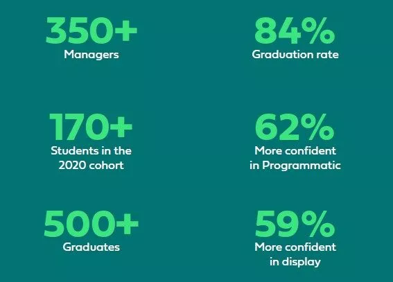 86% of graduates said they were more confident in Digital Trends, 82% were more confident in Programmatic, and 68% were more confident in Display.