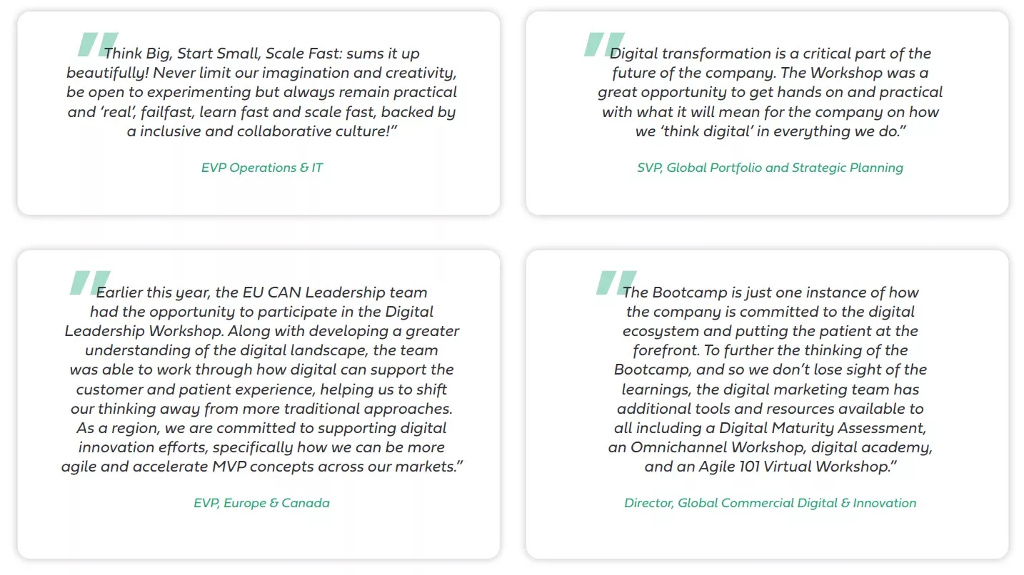Through the fast virtual learning environment roll out, the digital marketing team has been able to perform with more confidence. It also allowed them to fail fast instead of spending millions testing with small markets then scaling to ensure they are solving the challenge in an equally scalable way. The team was able to gather insights to ensure they were delivering value faster to their patients.